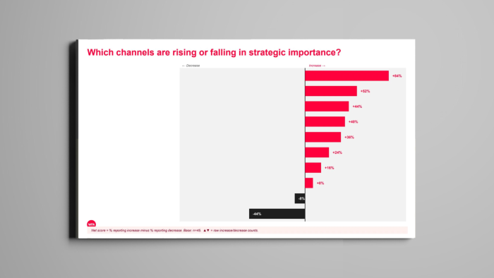 The poll shows that channels such as influencer and creator partnerships are growing in strategic importance, while out-of-home and traditional TV and radio are declining.