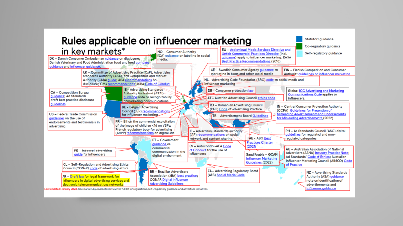 This mapping gives an overview of regulations, advertising standards and WFA member associations’ initiatives when it comes to setting rules and guidance for influencer marketing.